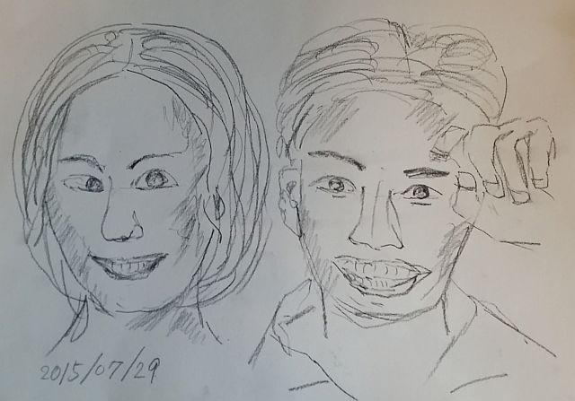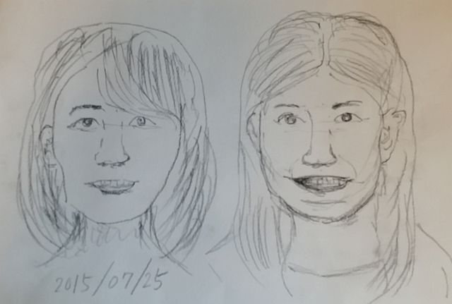 毎日猛暑が続き絵筆を持つ気もしないが、先生がクロッキーの練習はモデルがいなくても、一本のコンテ鉛筆があれば雑誌や新聞の写真をみて出来ると言ったことを思いだして、最近の新聞に載った顔写真をもとにクロッキーの練習をした。一本描き、5分で速写の練習であるが、ついつい試し線の癖が出る。速写のために、消しゴムは使わないというのが原則であるが、描き終わって眺めるとやはり訂正をしたくなる。